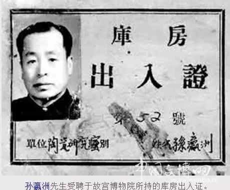 故宫博物院工作期间,有一次孙先生让人们把宋代官窑、哥窑、汝窑瓷器及一些明清的仿品放在一起,他背过身,人们打乱摆放次序,他闭上眼,转过身,用手摸,一一准确地说出了各自的名称。例如,对宋代官、哥窑瓷器之鉴定,他仅用手指捏瓷器的圈足就可判定窑别,令人钦佩,而且对成化斗彩瓷器的鉴定也具有独到的见解。