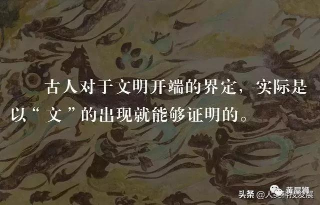 “文明”在《尚书·舜典》也出现过:“经天纬地曰文,照临四方曰明。”文明是人文化成的进展过程,正是人类通过自己的思想意识不断把握人与自然的相互关系,通过自己的创造力不断深化对自然的认识和理解,并且为自身发展所用,创造出不同的物质、精神文化产物,并能够以这些产物为载体来彰显天、地与人之间的信息和内容。人们普遍认识的文明,是指人类所建立的物质文明和精神文明的统称,而文字作为记载和传播文明的方式和途径,科学界也通常将把文字的出现称之为人类文明进化的开端。而古人对于文明开端的界定实际是以“文”的出现就能够证明了,“字”记录语言声音的方式,其中并没有直接对应的事物信息与内容。