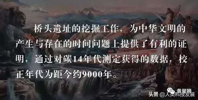 对于中国文明留存的时间问题上,国际最流行 的说法是按照20 世纪前期殷墟发掘的考古成果,把西元前 1500 年以后殷商文明作为中国文明最初起点,因而把中国排在“四大文明古国之末”。中国国内发表的大部分中国史、世界史著作,最多也只是把中华文明起源的源头上溯到西元前 2000 年的夏朝。其中还混有不少中华文明“西来论”的假说。但这一次,桥头遗址的考古发现却是对那些恶意缩短中华文明存续时间的学者们给予了有力反驳。我们需要清楚,中华文明的产生与发展距今远远超过国际上的3500年,也不是现在历史教科书和人们俗称的5000年。此前,大地湾遗址发掘时,就已经将中华文明的存续时间定位在了8000年左右,而今又一次更新为9000年。所以,请每一位中华儿女都明白,作为中华民族的后裔,你我所承载的中华文明至少存在了9000年!桥头遗址的发掘成果不单纯印证中华文明存在的时间至少9000年,同时还证明了伏羲氏族所创立的伏羲八卦以及连山历法的存在年代至少是9000年。