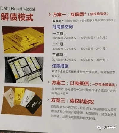 贵州众合天下债事生活服务有限公司对外宣称以债权实现消费化债的模式进行运作,那么实际上真实做法是什么呢?举个例子,假如本人有一份100万元的债权(欠条),自己可以拿出50万现金+欠条(100万的债权)+10%的手续费+2千元报备费交到贵州众合天下债事,该公司就把100万按12个月返给本人,因为债权并未消失,故此可净赚39万8千元。红图财经发现,上述项目是一年期的,还可以设置两年返还和三年返还。