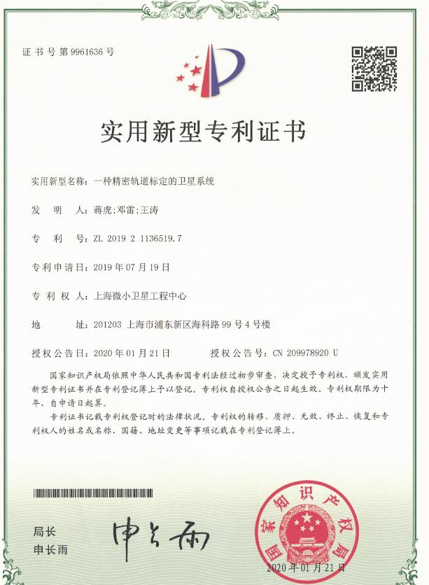 在量子科学实验卫星平台设计基础上,通过创新性的构思,蒋虎及合作者共同提出了“一种精密轨道标定的卫星系统”的卫星设计方案,并获得了国家专利授权。该专利可望为后续的量子应用卫星工程设计提供一种候选方案。